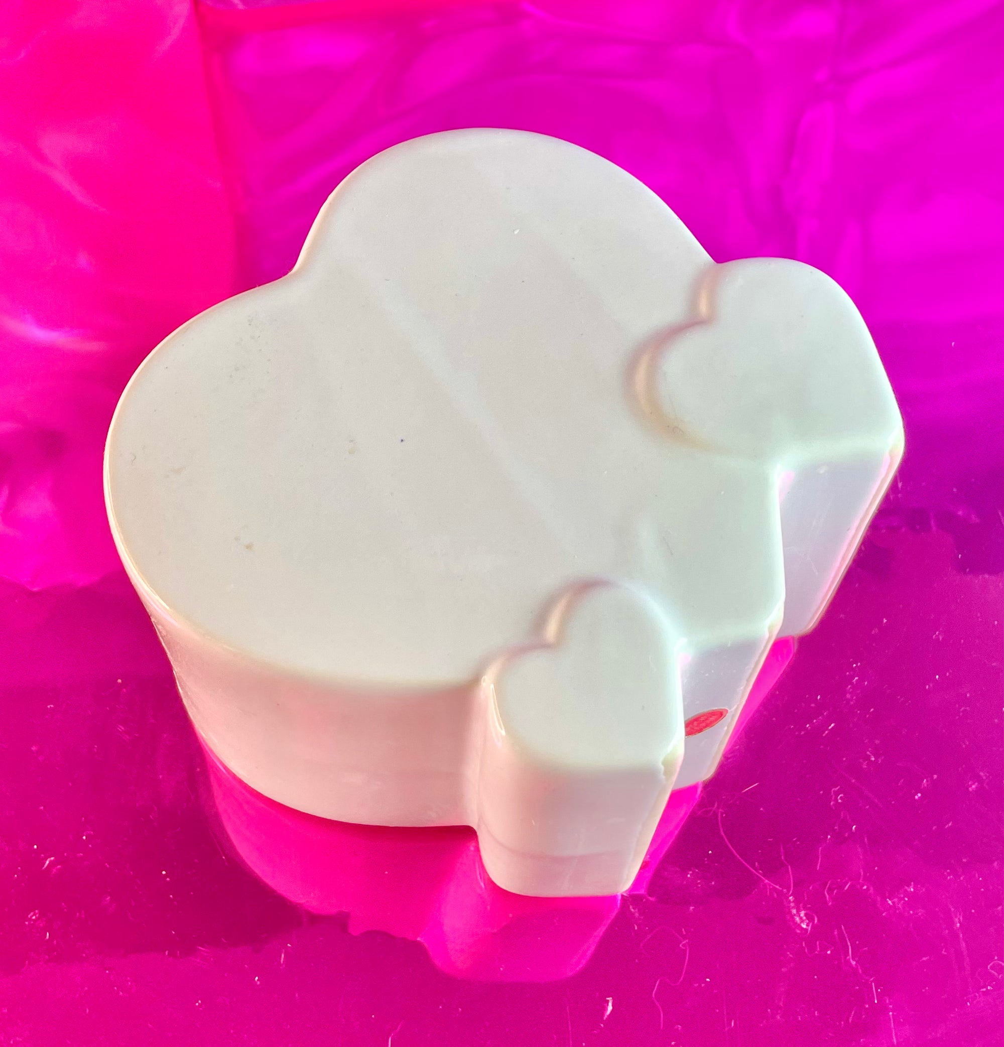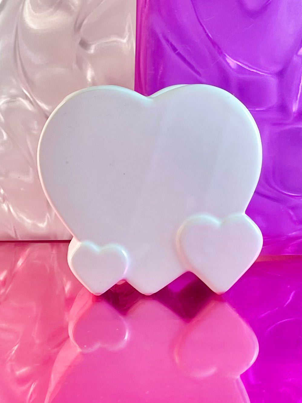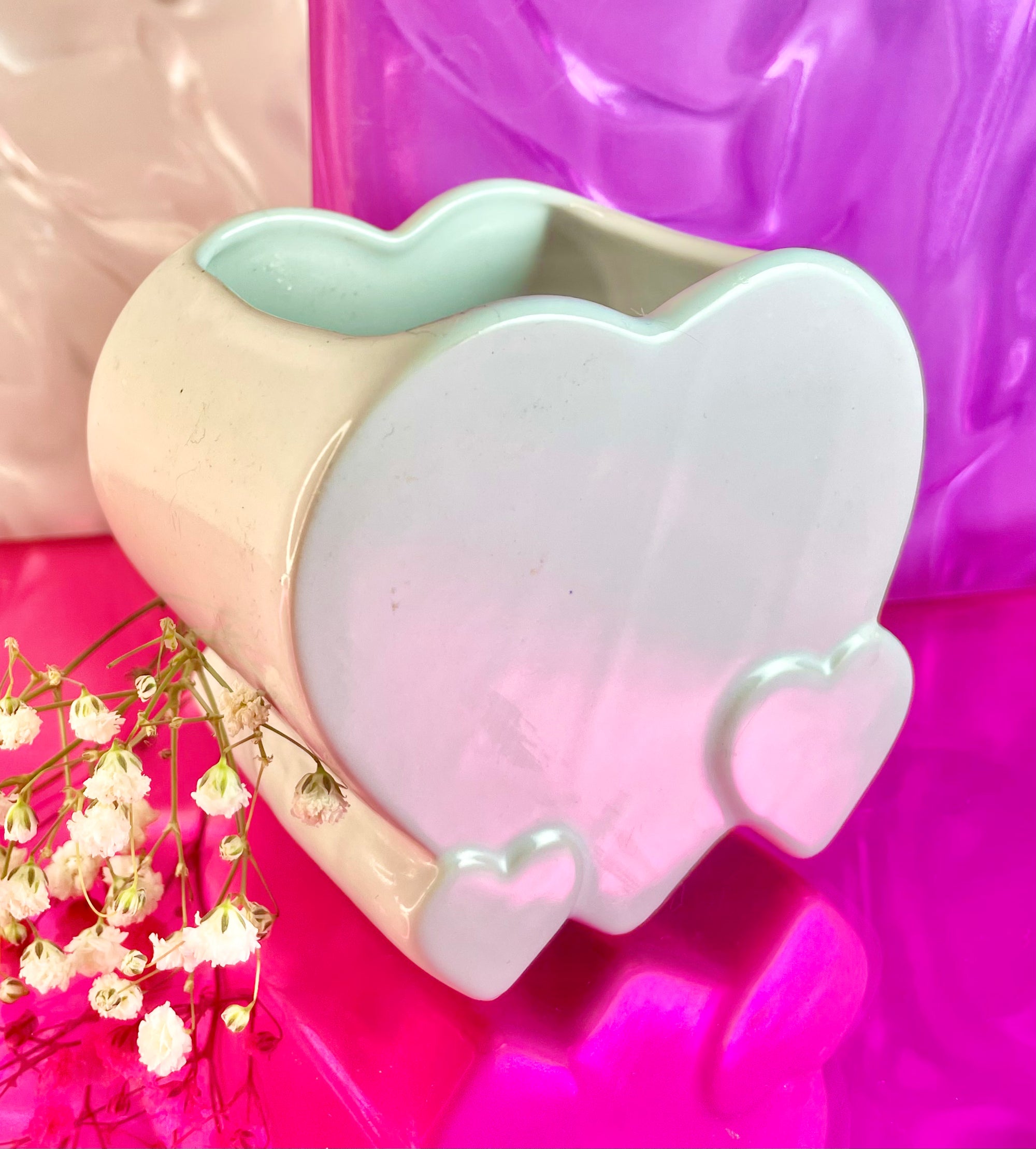 This White Ceramic Heart Stasher Vase features three hearts and is a perfect pen holder or toothbrush holder. The maker's mark on the bottom notes made in Japan.