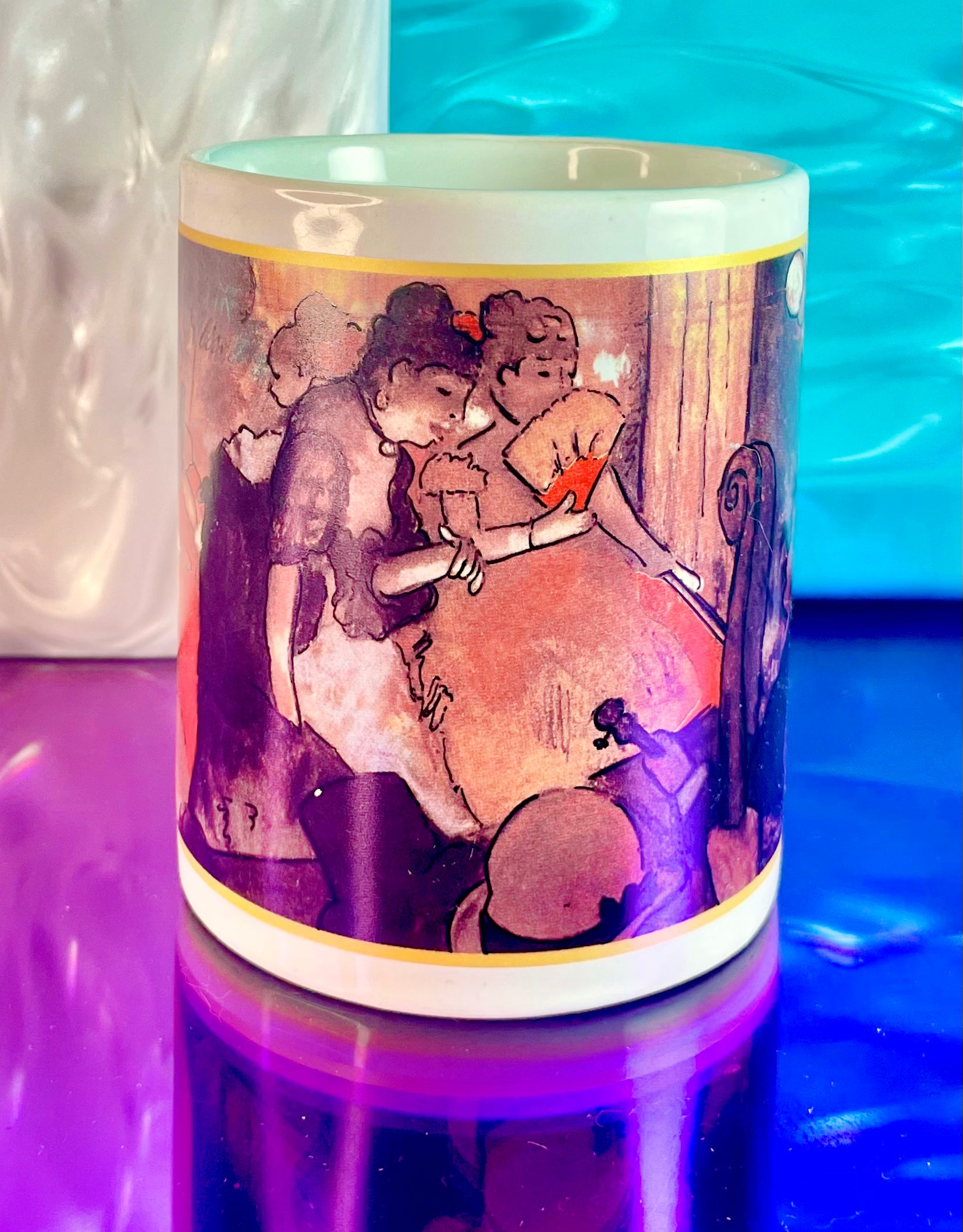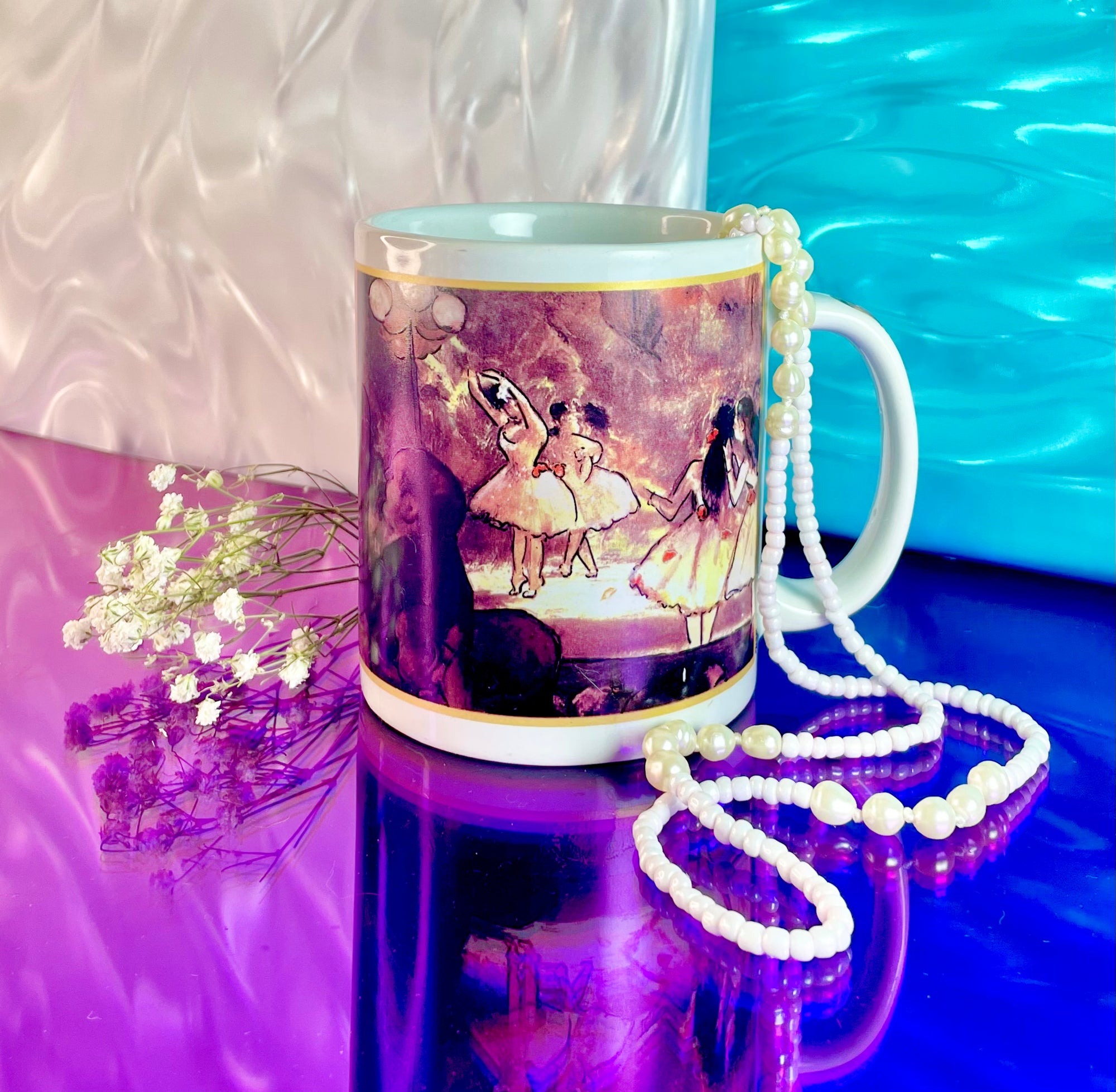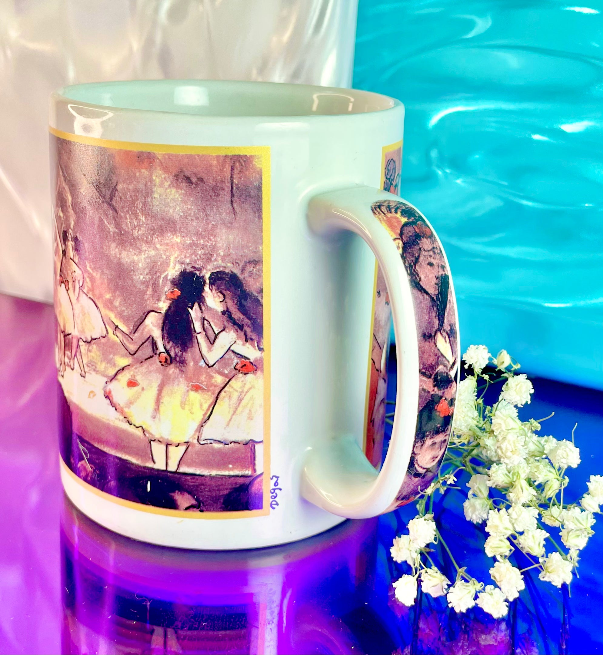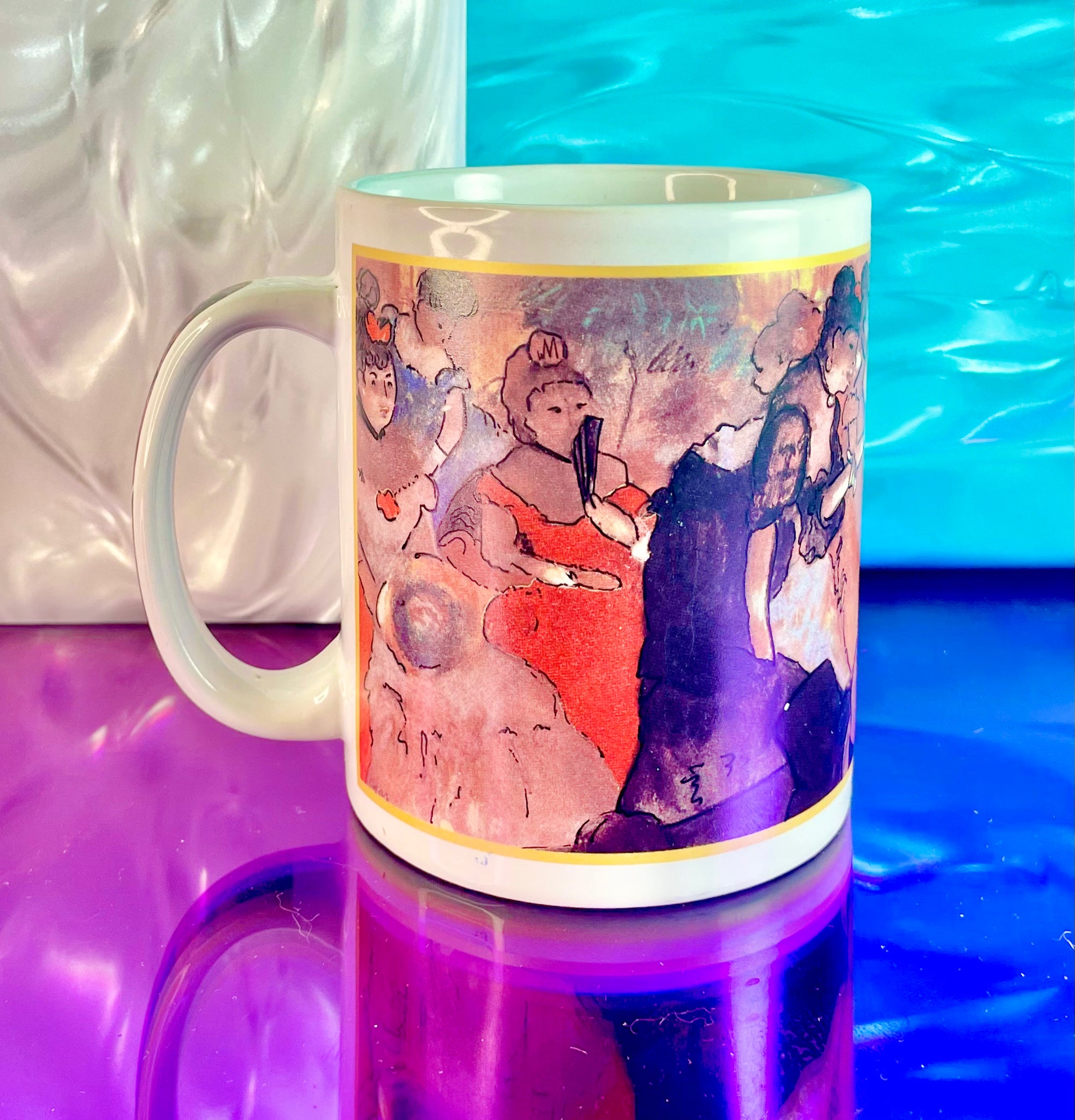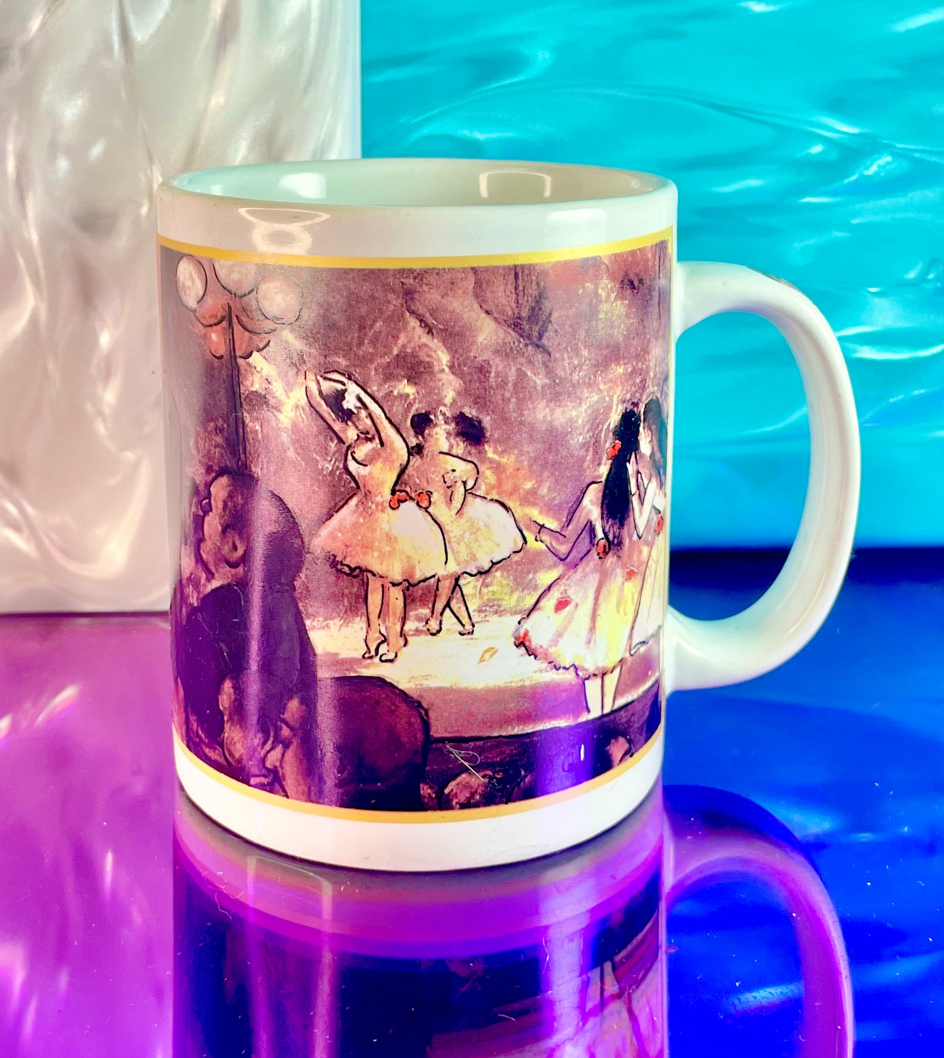 This lovely Ceramic Degas Ballerina Mug depicts a ballet performance attended by fancy ladies. With detailing on the handle, this mug is great for every day use.
