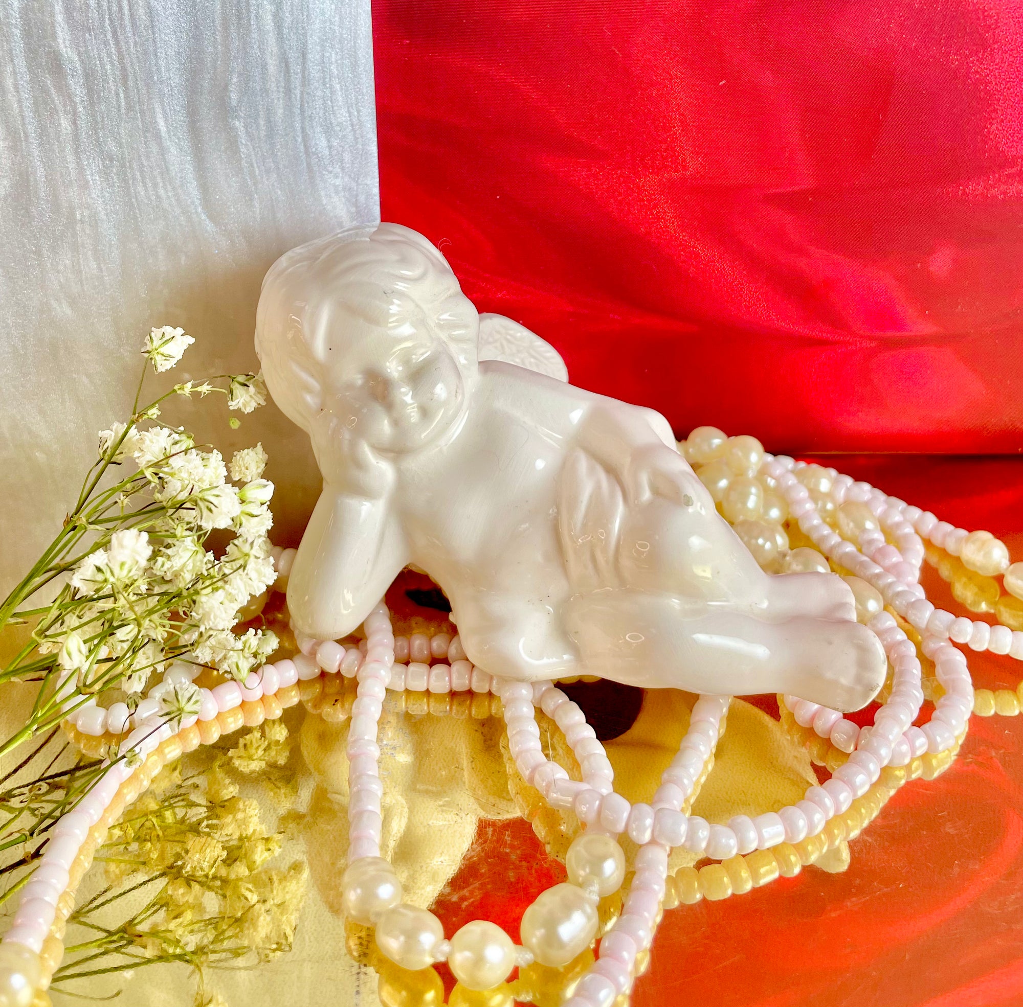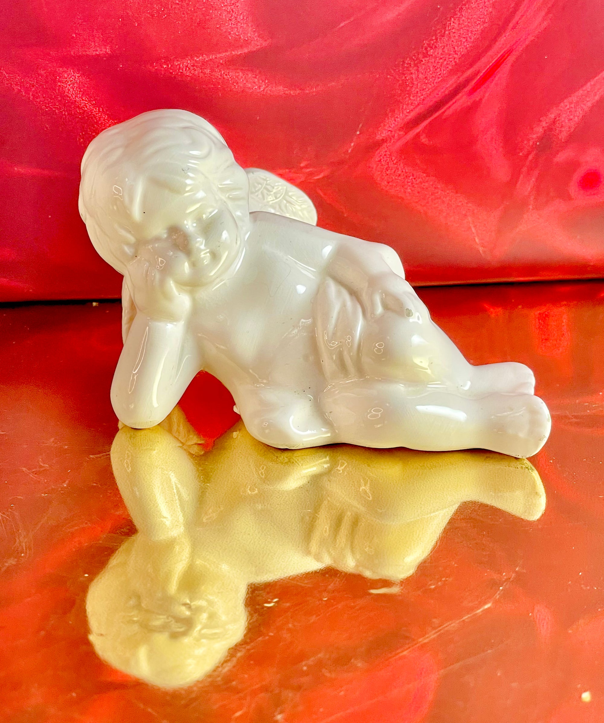 This comfy little Ceramic Lounging Angel Figurine is the perfect little trinket. His casual demeanor and cherubic expression sets an angelic atmosphere.
