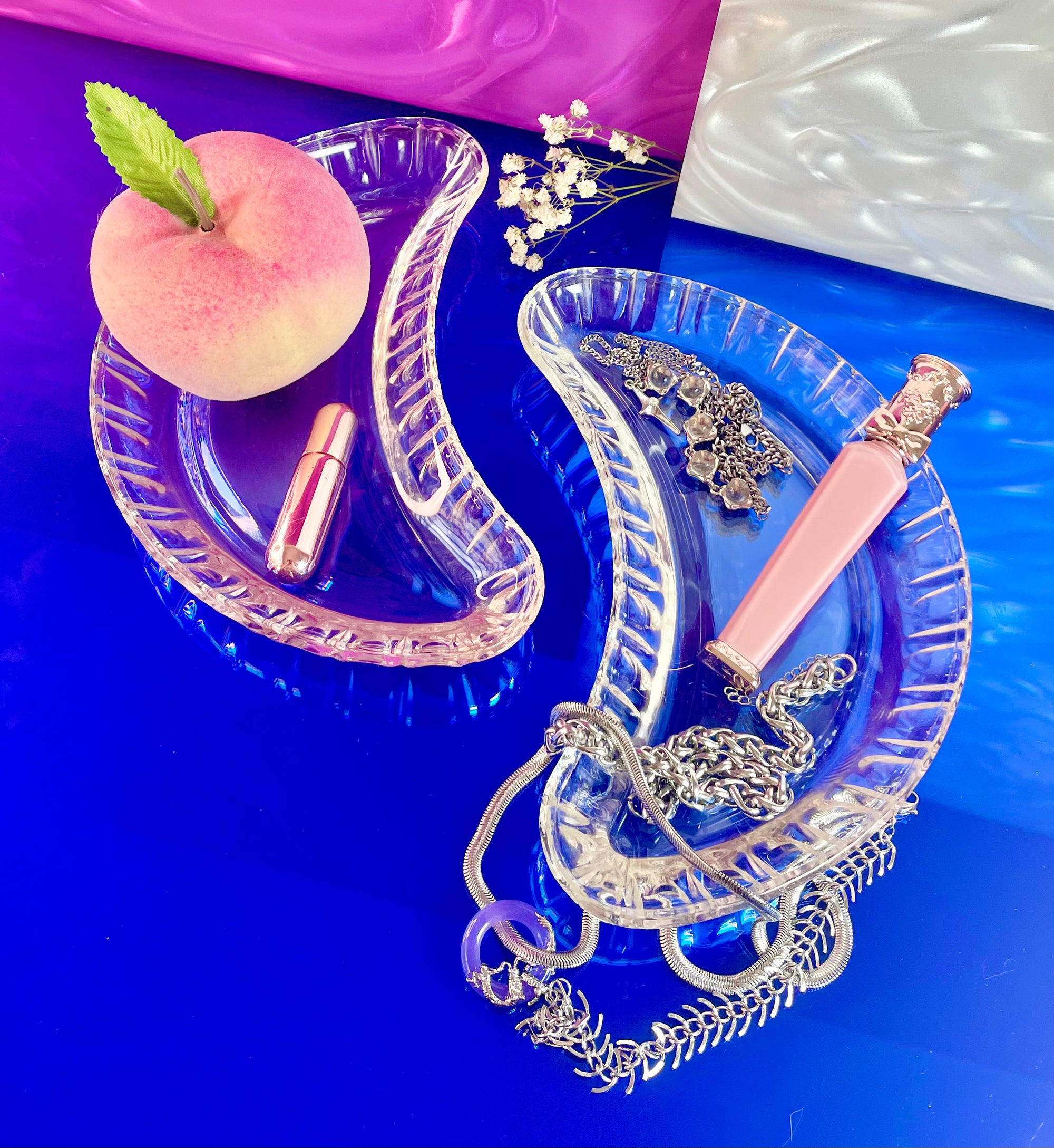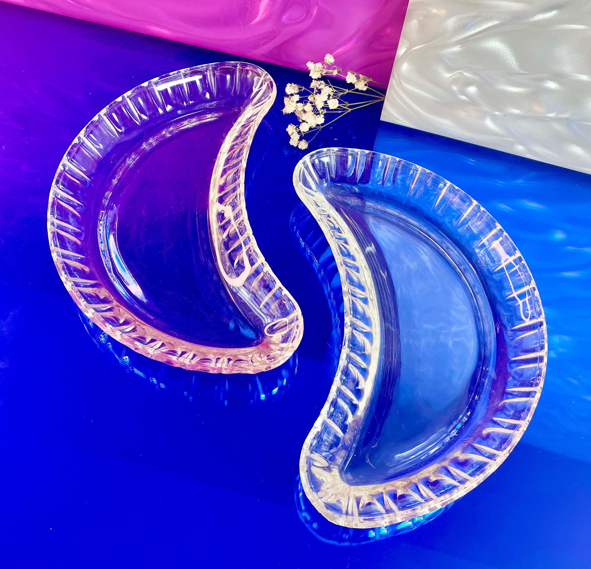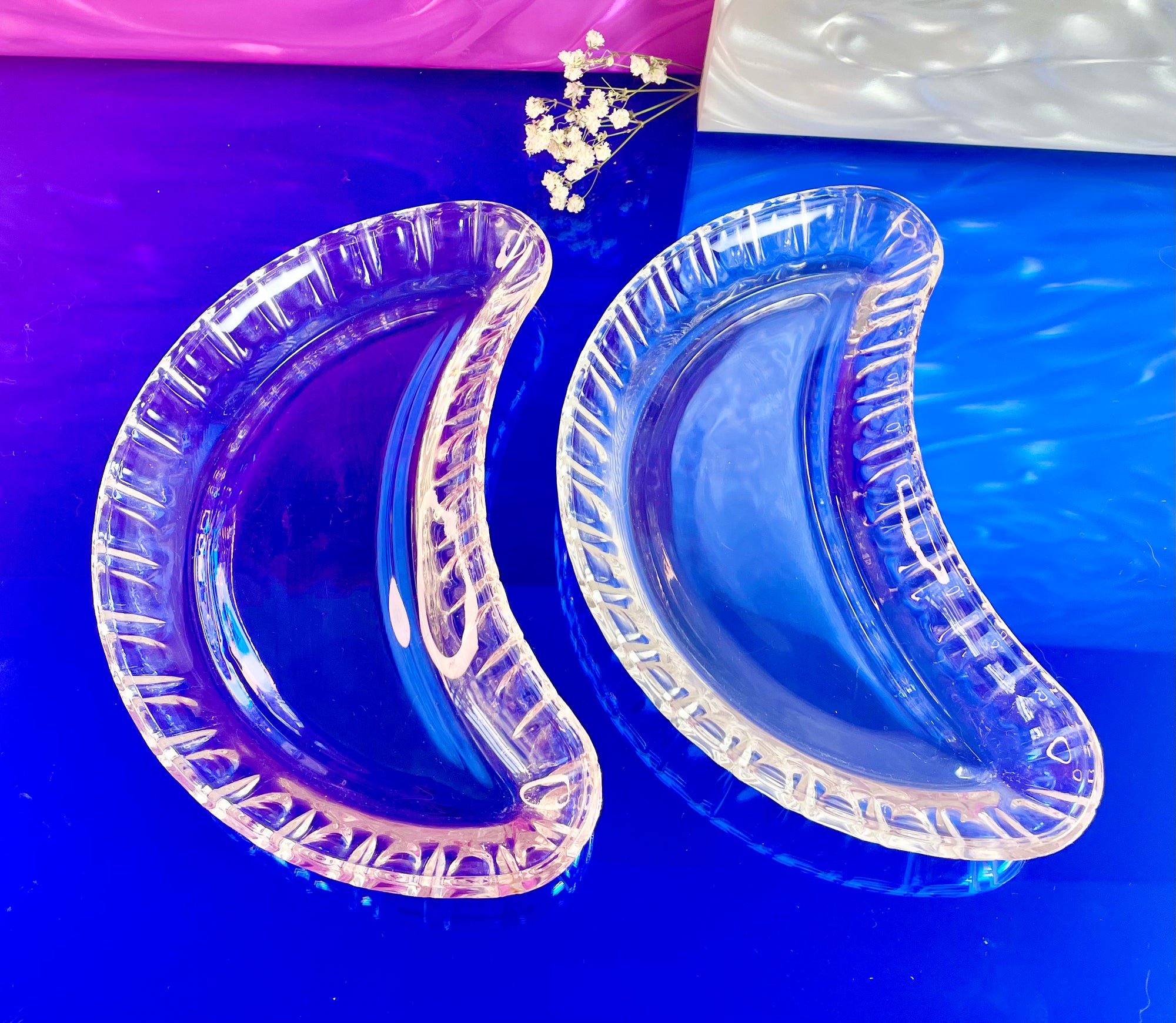 This pair of Crescent Moon Glass Plates feature a darling crescent moon design and are perfect for every day use or as catchalls.