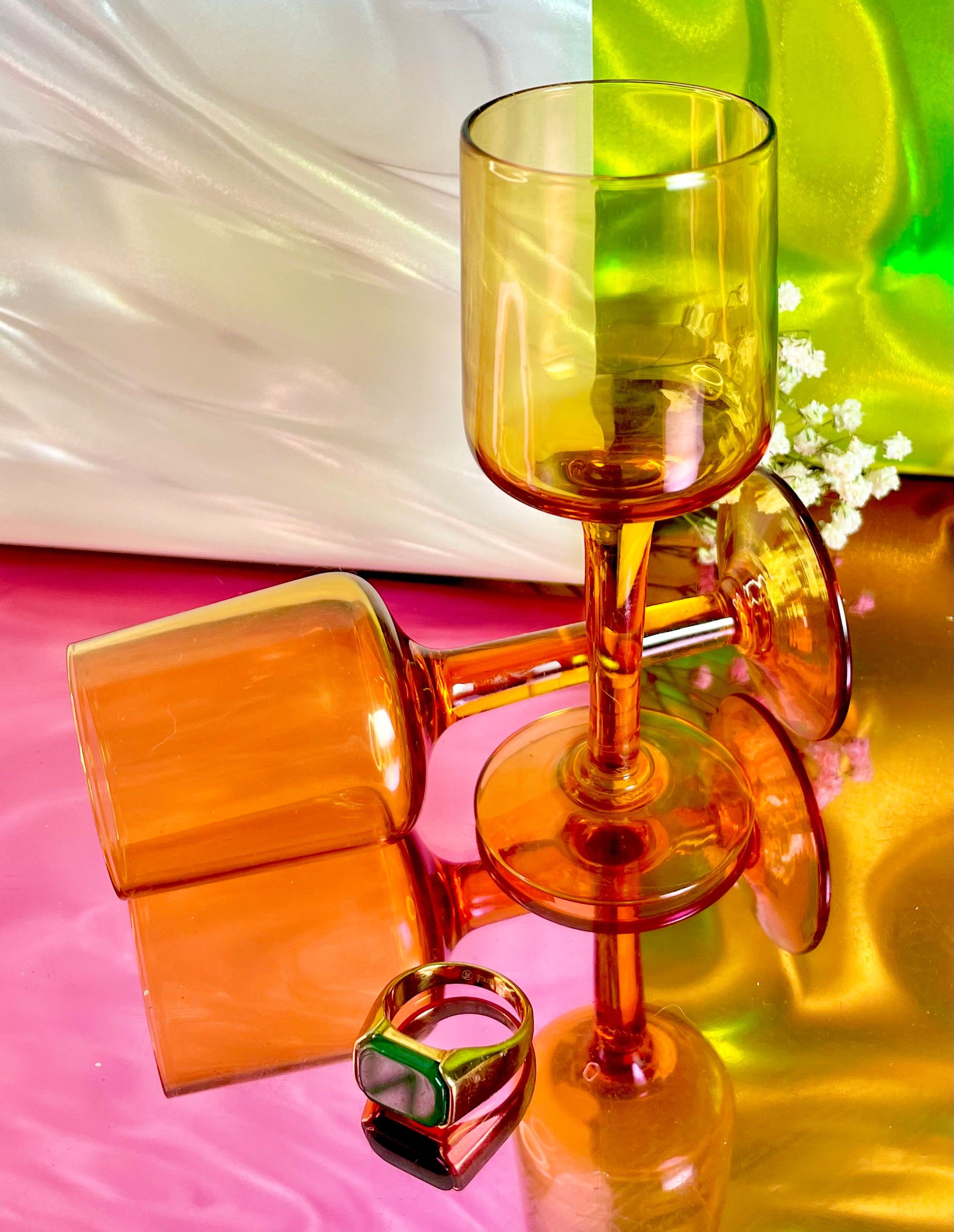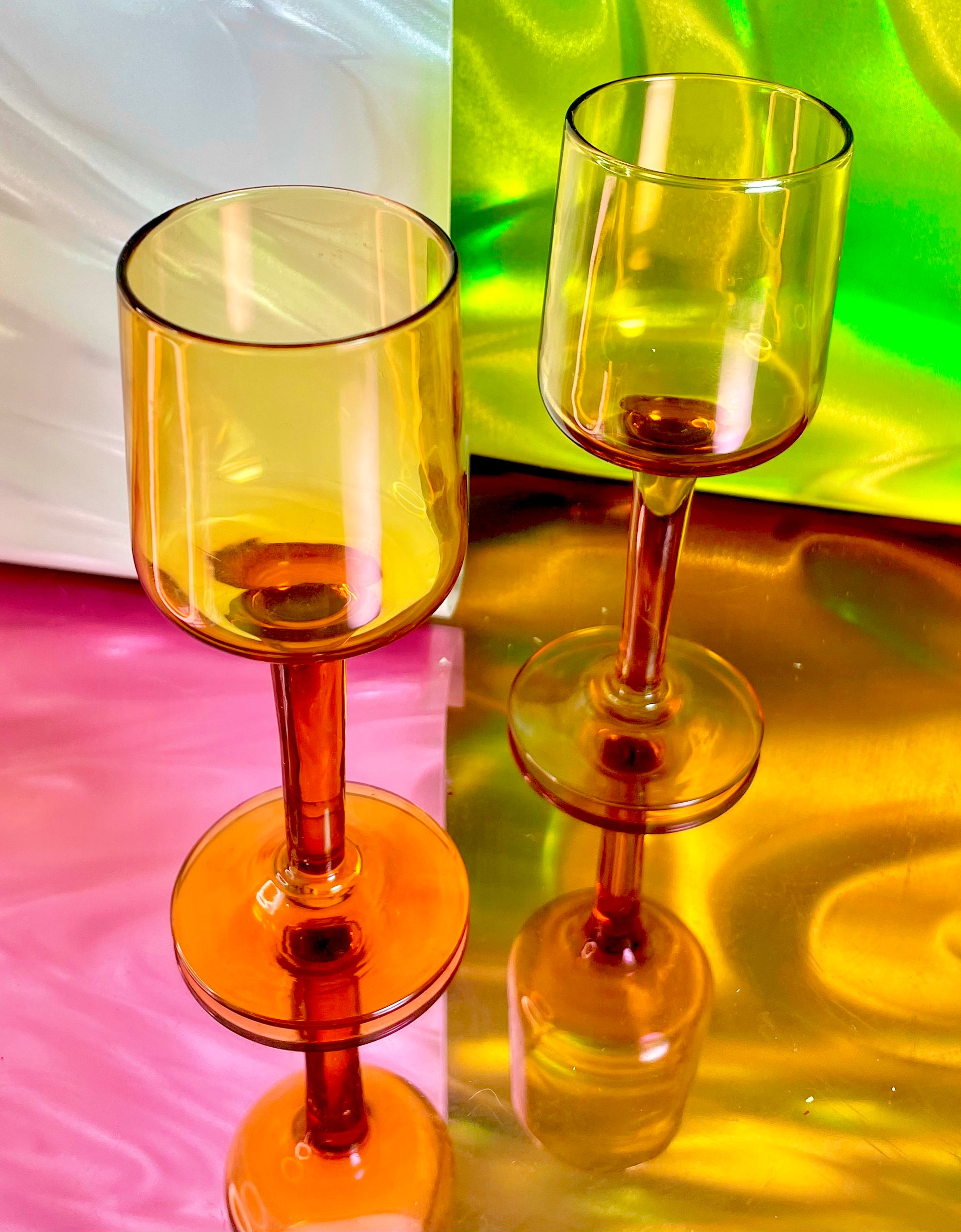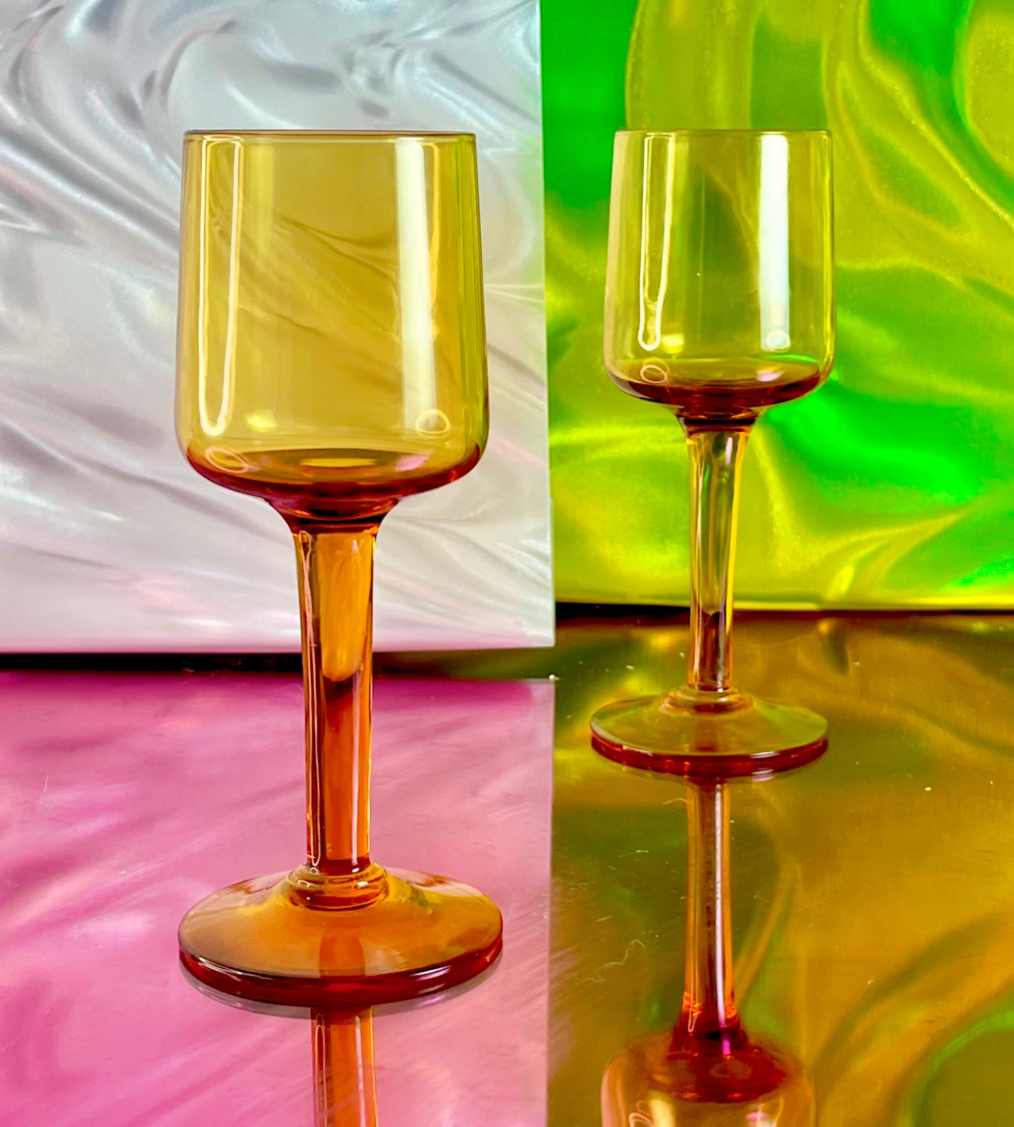 This pair of Amber Glass Stemmed Shot Glasses add a touch of class to your spirits.